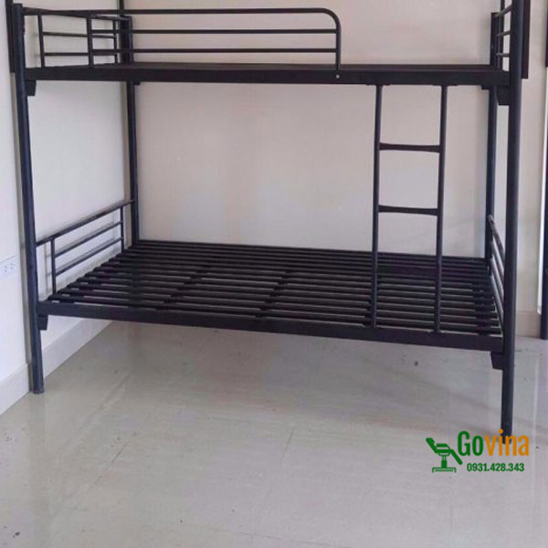 Tổng kho giường sắt giá rẻ tại Hà Nội. Mẫu giường sắt 2 tầng 1m màu đen GS-01GD cực đẹp, gọn gàng chuyên dùng cho gia đình, homestay. Giường tầng sắt 1m bằng chất liệu sắt sơn tĩnh điện bền chắc, an toàn tuyệt đối, giúp tiết kiệm không gian tối đa.