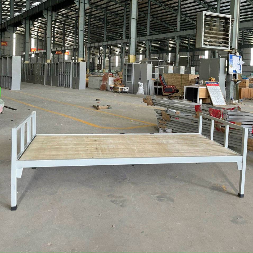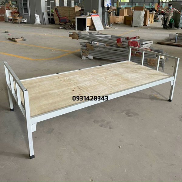 – Giường khung sắt sơn tĩnh điện chắc chắn, độ bền cao. Mặt gỗ MDF (hoặc dát sắt)