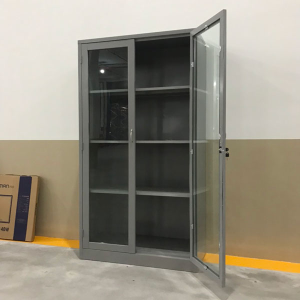 Tủ sắt văn phòng 2 cánh kính là hàng  nguyên khối, sắt dày 0.5 đến 0,7 mm, được sơn phun tĩnh điện màu xám, hoặc có thể đặt hàng theo màu sắc. Trang bị khóa locker bảo mật tốt là lựa chọn tuyệt vời cho các công ty, doanh nghiệp, cơ quan, vv hiện nay.