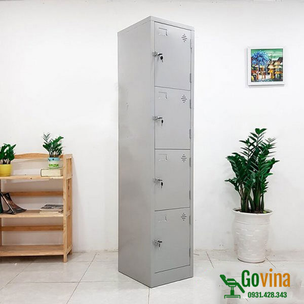 Tủ locker 4 ngăn – một trong những mẫu tủ đang bán chạy nhất năm nay ở Govina, thường xuyên sử dụng trong văn phòng để đồ cá nhân cho nhân viên hay tủ gửi đồ ở các shop thời trang, siêu thị mini,…vv phù hợp cho không gian bé và số lượng người sử dụng ít. Ưu điểm tuyệt vời là thiết kế nhỏ gọn nhưng khả năng chứa đồ rất nhiều, rất tiện lợi.